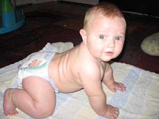 Garrett has a new trick... He gets up on his hands and knees and starts to rock. Without a doubt he will be up and moving soon.
